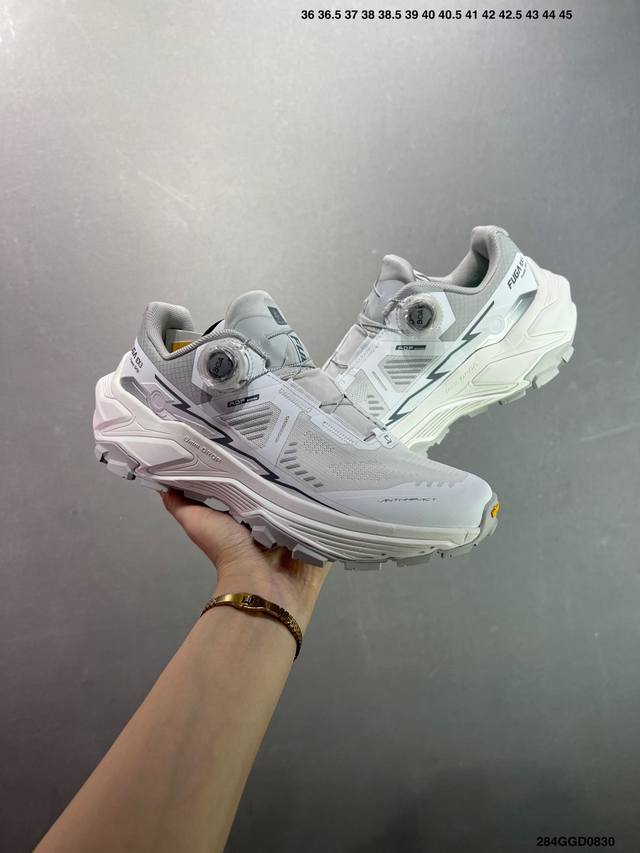 Boa适配系统 通过旋钮实现快速微调 精准贴合Vibram Megagrip Litebase 大底 125Mm超宽前掌 提供超强抓地力 可以轻松应对陡坡 湿滑路面等复杂的山野路况