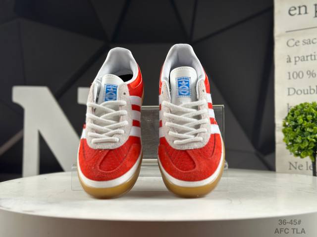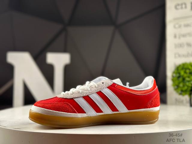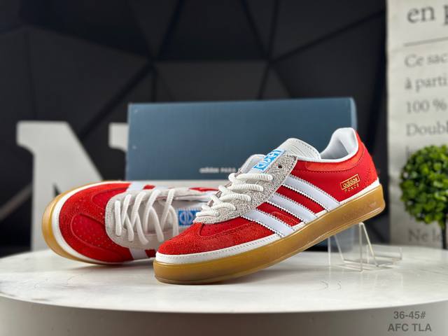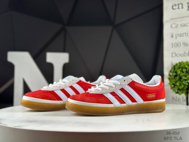 公司级半码阿迪 Bad Bunny X Adidas Originals Gazelle Indoor 时尚舒适 耐磨 低帮 板鞋 男女同款 大红色 Afc 尺