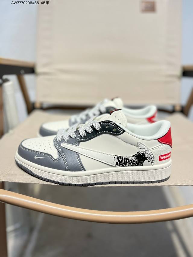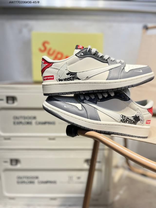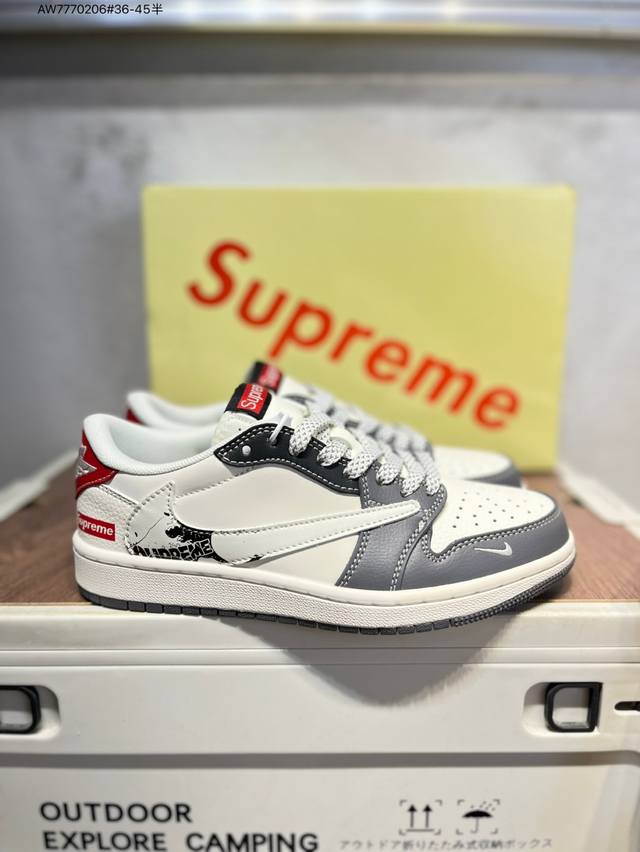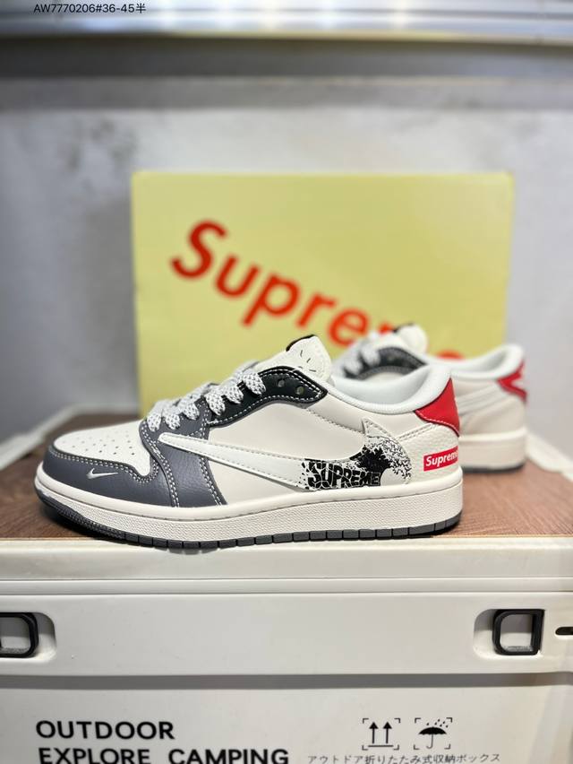 / 公司级头层皮Supreme X 乔丹Air Jordan 1 Low Aj1低帮系列篮球鞋 官方同步配色 原装级产物 #拒绝公底 立体鞋型 细节完美 高清洁度Q