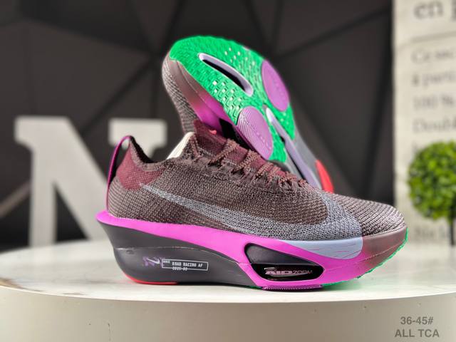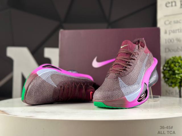 公司级带半码 耐克 Nike Air Zoom Alphafly Next% 3 马拉松 全新马拉松超级跑鞋 有史以来最轻盈、测试次数最多的Nk Alphafly 经过精英马拉松运动员的测试验证 并搭载Air Zoom气垫 旨在助力跑者实现突破 取得更佳的成绩 在开发过程中 Alphafly 3帮助耐克运动员凯尔文 基普图姆 Kelvin Kiptum 以 0:35的成绩刷新了马拉松世界纪录 Alphafly的动力设计没有改变 Air Zoom气垫单元、Flyplate碳纤维板和Zoomx泡绵 但是整体系