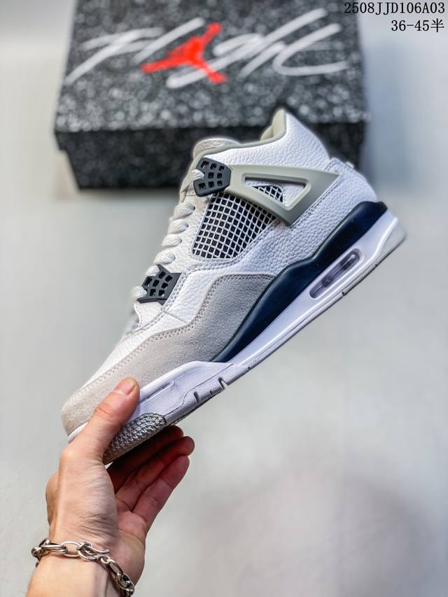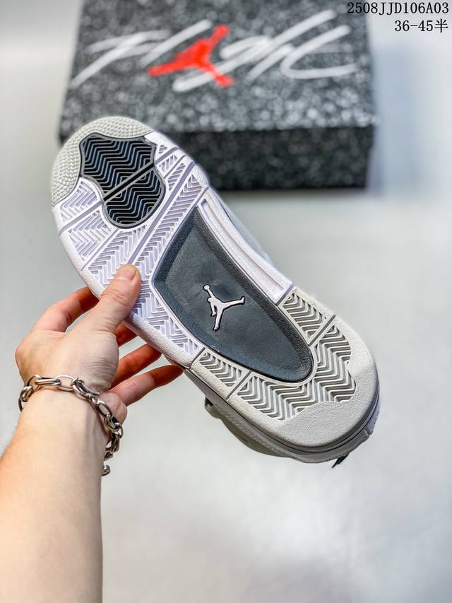 公司级 耐克 Nike Air Jordan 4 Retro Og迈克尔 乔丹Aj4代乔4 中帮复古休闲运动文化篮球鞋。秉承轻量化的速度型篮球鞋设计思想完成设计,降低重量的同时提升舒适度,中底延续前作使用了分离式后掌可视化 Air Sole气垫。鞋带孔和后跟鞋提以籃网为造型灵感,将篮球运动巧妙融入到鞋款的设计之中,使鞋身整体富有流动性、节奏感和优雅气质。
