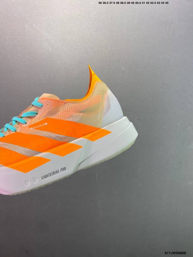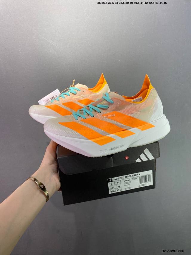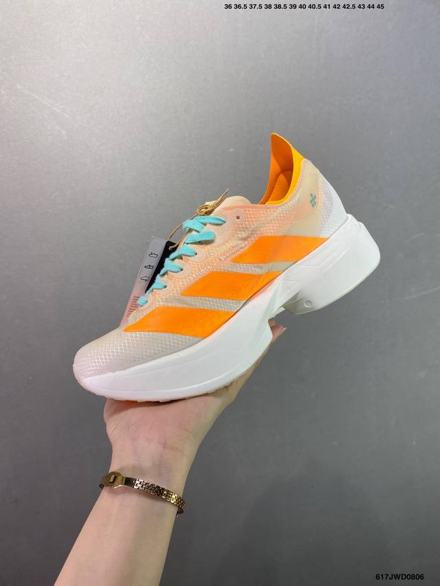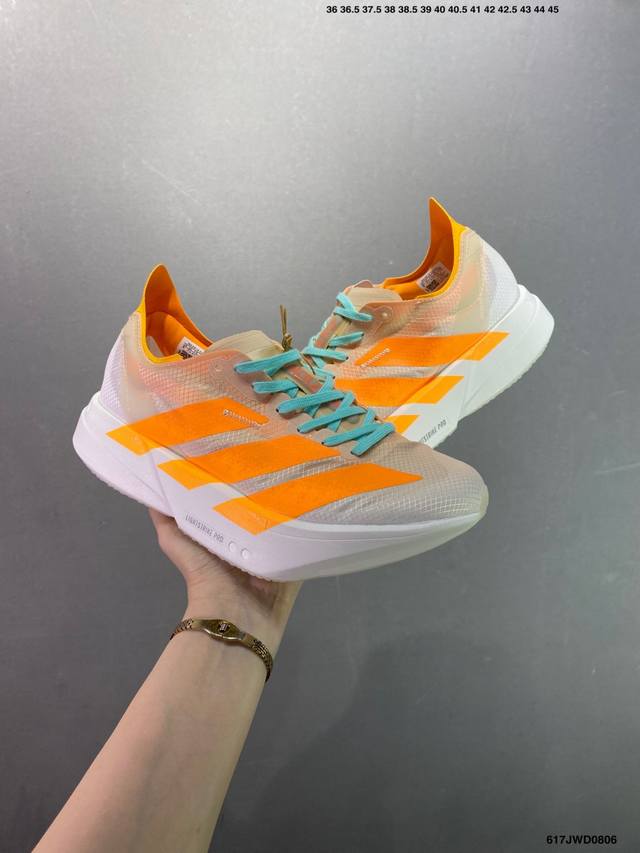 公司级Adidas阿迪达斯Adidas Adizero Adios Pro 4耐磨减震专业跑步鞋 男女士运动鞋 北京马拉松40周年限定。冲向目标,一路向前,不断挑战和突破自我。无论是平时训练还是马拉松,让这款Adidas跑步鞋伴你畅快开跑。兼具舒适性和结构感,搭载Lightstrike科技,为步伐注入活力。Qqsdaa0508