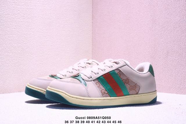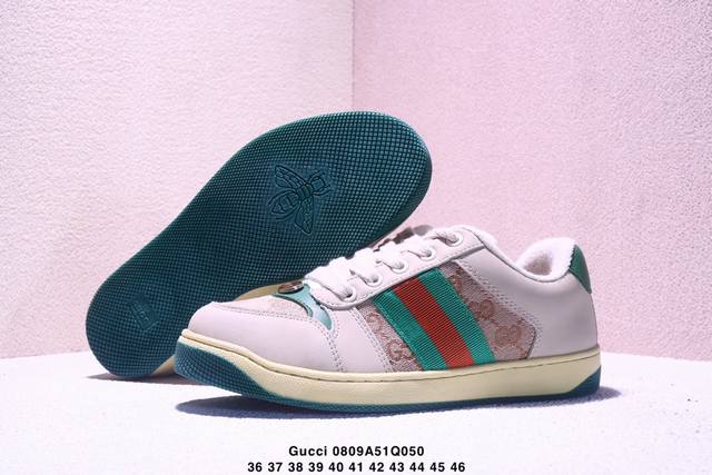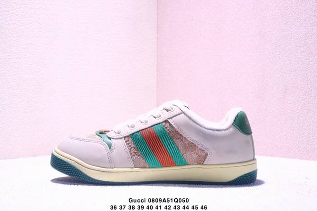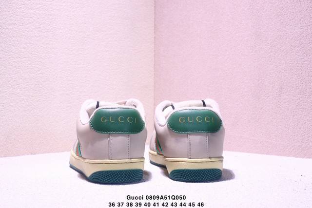 公司级Gucci Distressed Screener Sneaker 古驰小脏鞋系列 官方同步 绿盒版本 海淘代购指定专供经典原型复古百搭做旧小脏板鞋复古学