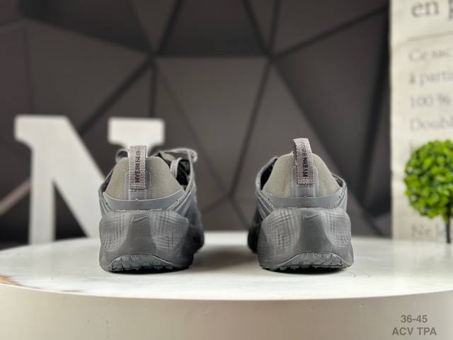 该鞋款采用流线型轮廓设计,鞋面结合 Tpu 网格支撑结构,中底搭载 Reactx 泡棉材质,外底为 华夫底纹,整体呈现机能风风格。