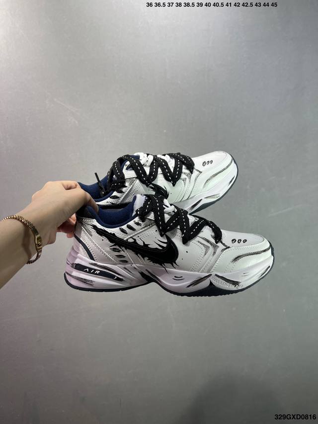 公司级Nike Air Monarch Iv皮革 日常百搭 減震防滑 低帮生活休闲鞋 采用皮革材质打造鞋面,鞋面结实耐穿,日常也非常好打理,整体配色以白色为主调搭配蓝色点缀,配色简约百搭,日常穿着百搭程度就不用多说了,超可!同时搭载全掌内嵌式Air 缓震配置,塑就缓震体验感、增高厚底同样带来不一般的感觉,