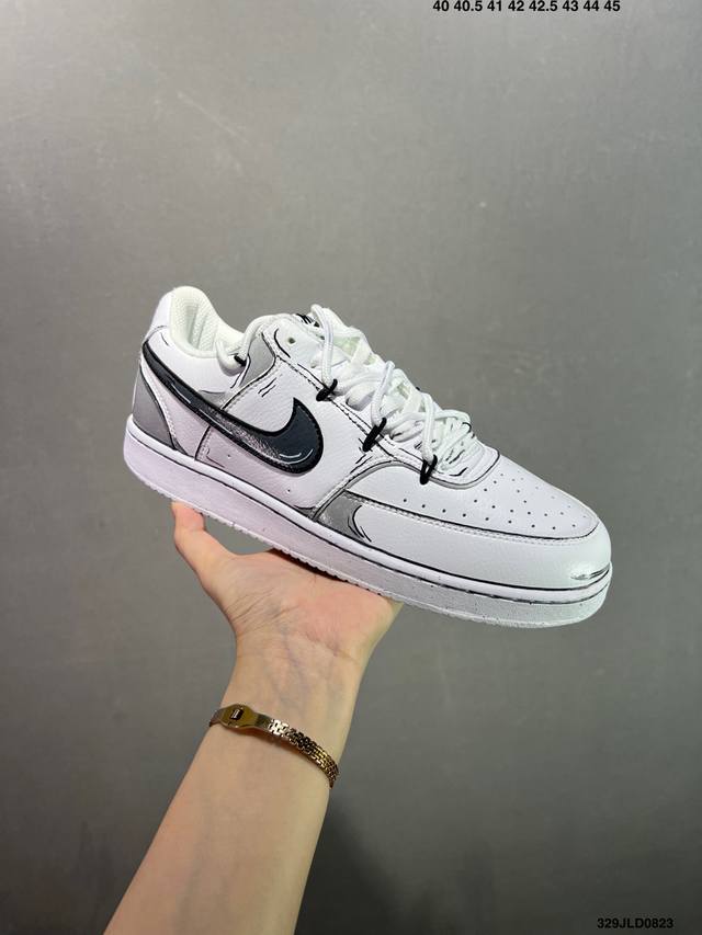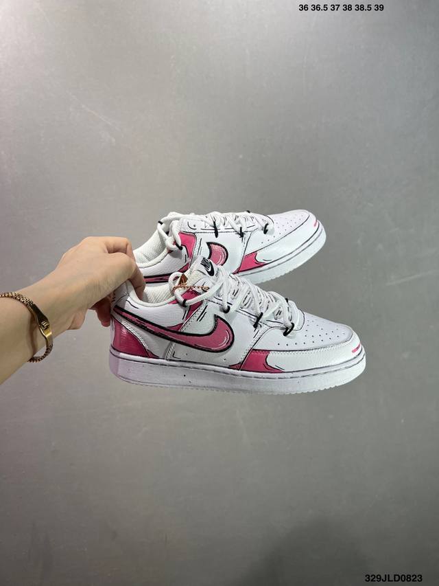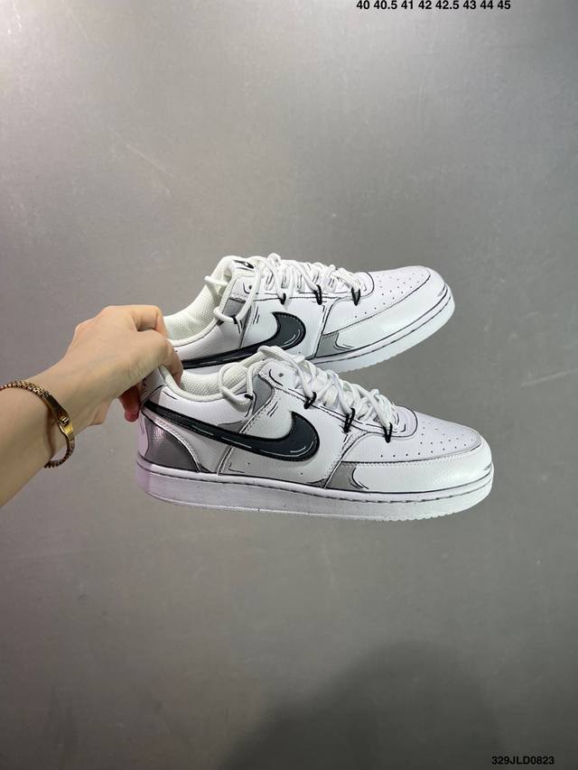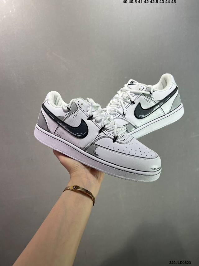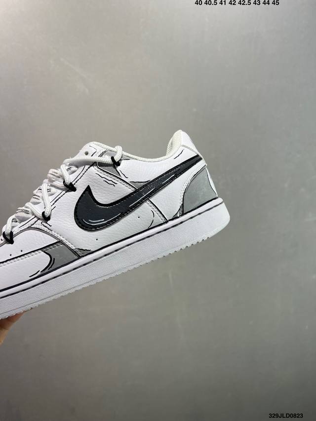 公司级Nike Court Vision 1 Low“幻影十字架” 手绘涂鸦定制板鞋