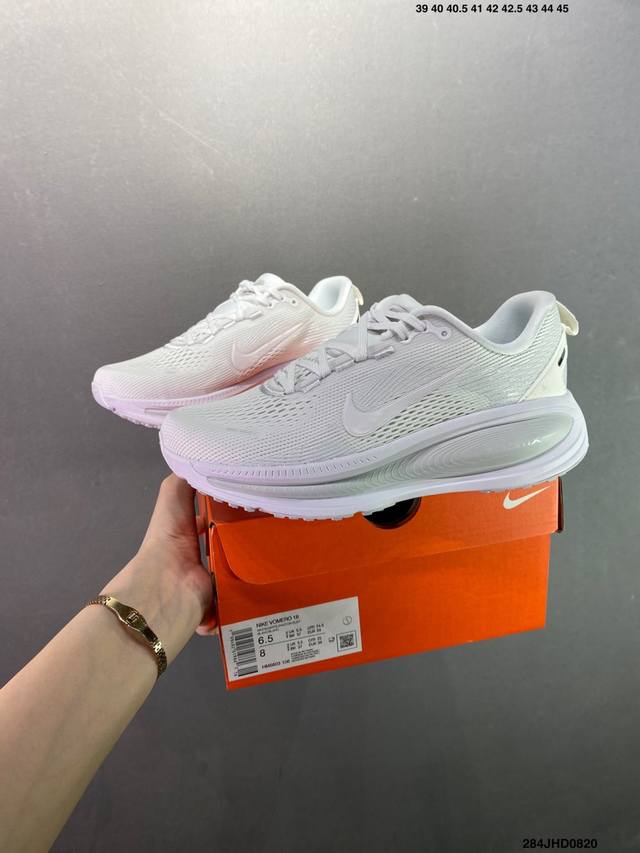 公司级Nk Air Zoom Vomero 18 轻便舒适公路跑步鞋 Hm6803-001 质感柔软 弹力充沛 助力一路畅跑 乐享不停 厚实泡绵缔造舒适的回弹效果 铸就出色跑步表现 该鞋款轻盈透气 带你步入舒适新境界 疾速刺激感和非凡舒适脚感交织 定能让跑者在迈步间找到渴望已久的跑步乐趣 自如掌控跑步节奏、配速和里程 足底缓震配置赋予双足柔软舒适感受 助你一路畅跑 缓震设计 在双足触地时有助提供舒适脚感 搭载性能出众的 Zoomx 和 Cushlon 泡绵 营造柔软舒适脚感 助你稳稳迈步 基于跑者反馈 简