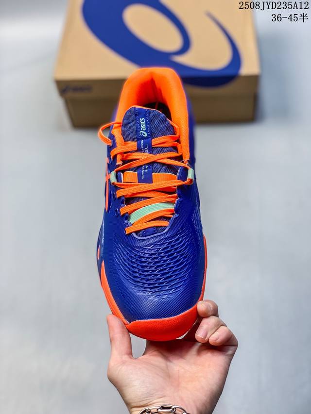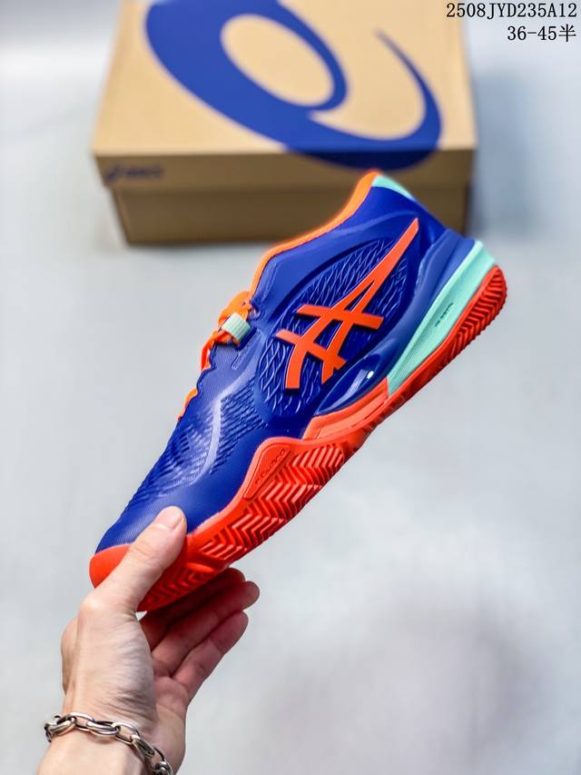 原档案数据开发楦型纸版,采用密实网眼编织物材质,升级Flytefoam Propel加厚中底缓震物料,外置防滑耐磨橡胶大底日本专业跑鞋品牌-亚瑟士Asics Gel Resolution X 决心X系列低帮网球训练透气休闲运动跑步鞋 1041A492 402