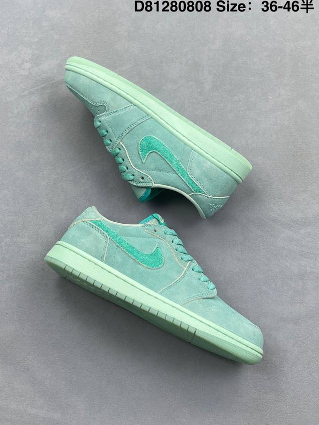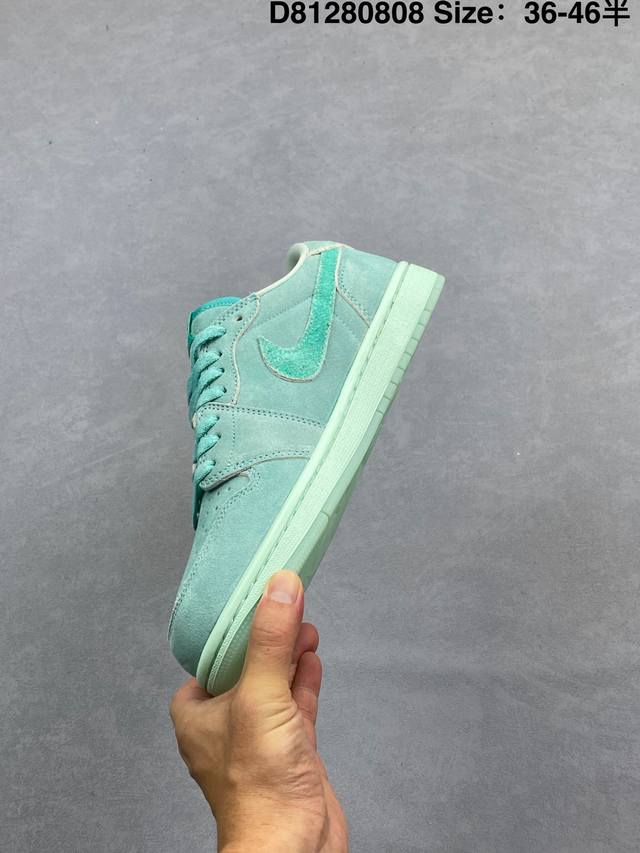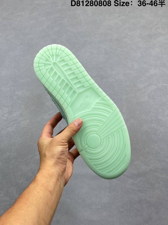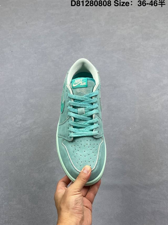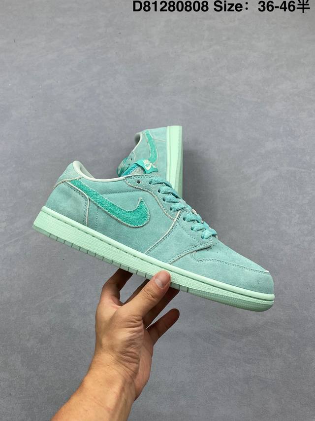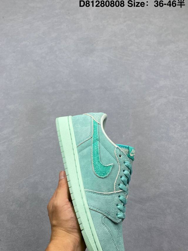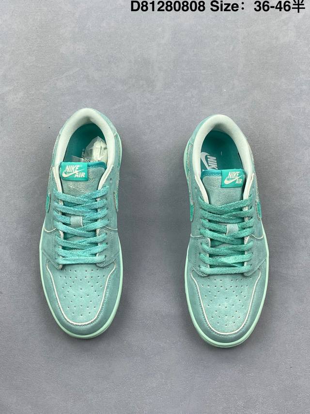 Air Jordan 1 Low Og Washed Team 低帮 水洗青釉 Aj1 乔丹1代 Aj1 乔1 低邦 蓝绿色 乔丹篮球鞋系列 此款鞋在经典鞋型上进行精致演绎,融入现代元素,采用清凉容柔和的水洗青釉配色,再加上高热度的低帮廓形,清爽气息扑面而来,绝对能给炎炎夏日带来一丝凉意;鞋身采用全麂皮材质打造,带来丰富的纹理感和层次感,独特的簇绒Swoosh Logo以立体刺绣工艺跃然鞋侧,扎染渐变鞋带增添亮点,打造出奢华出众的外观。相比传统Aj1 Low Og 版本,鞋子还在经典标志上