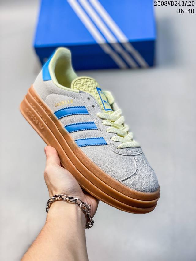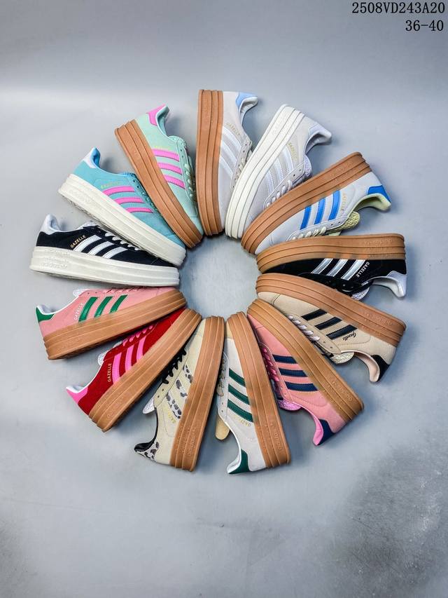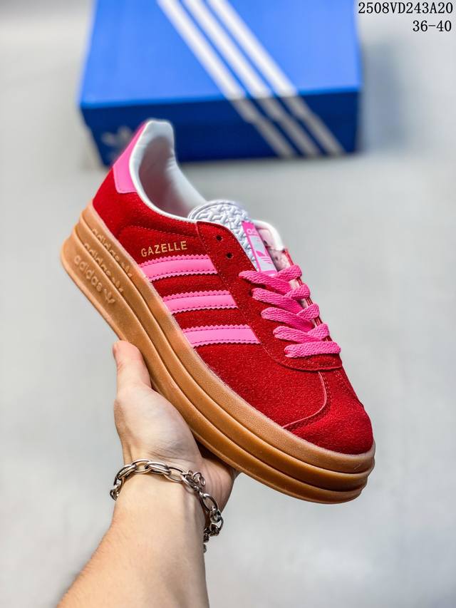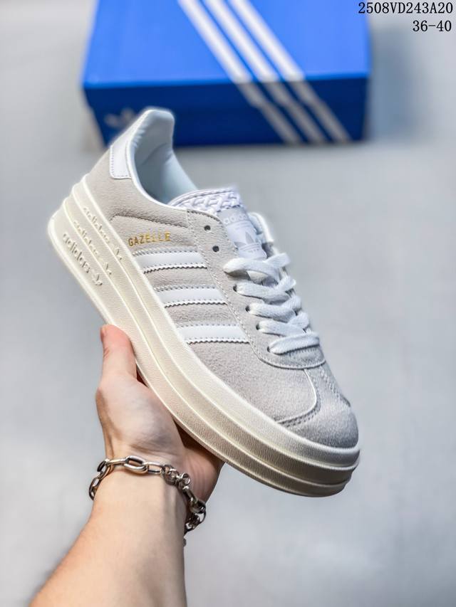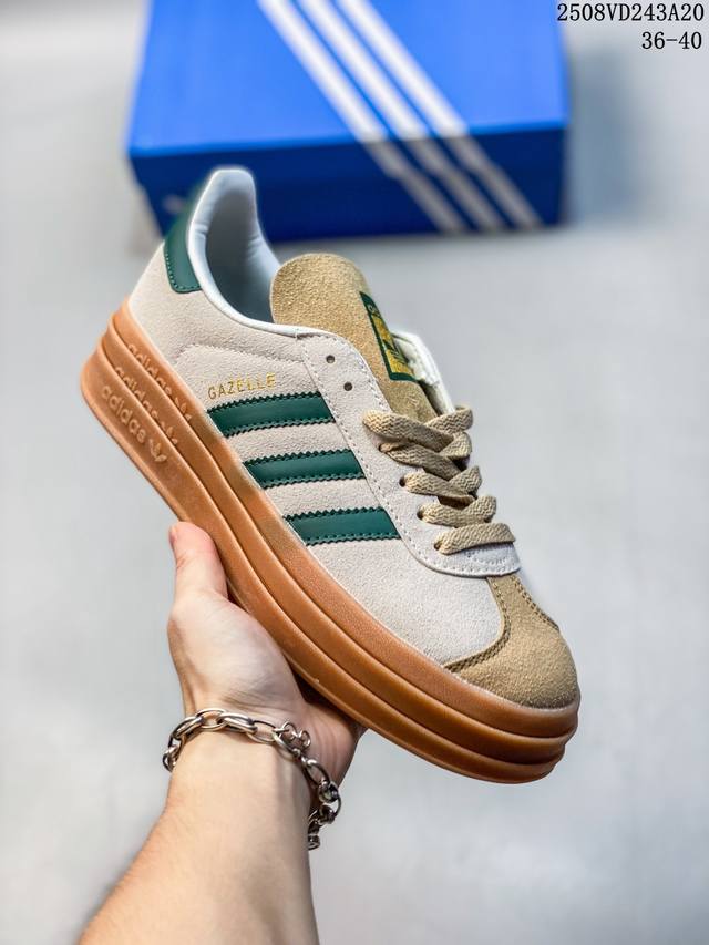 / 女鞋#升级原楦原纸版开发版型#采用翻毛皮组合纤维革鞋面材质#外置加厚橡胶大底三层松糕 女生绝对爱! Originals Gazelle Bold W 羚羊松糕系