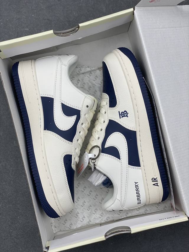 海外限量发售!公司级Nike Air Force 1 '07 Low “巴宝莉联名--米白藏蓝拼接”空军一号 低帮 运动鞋 休闲鞋 折边针车 工艺难度大 原楦头原纸板 原装鞋盒 定制五金配件 内置全掌气垫 原厂鞋底