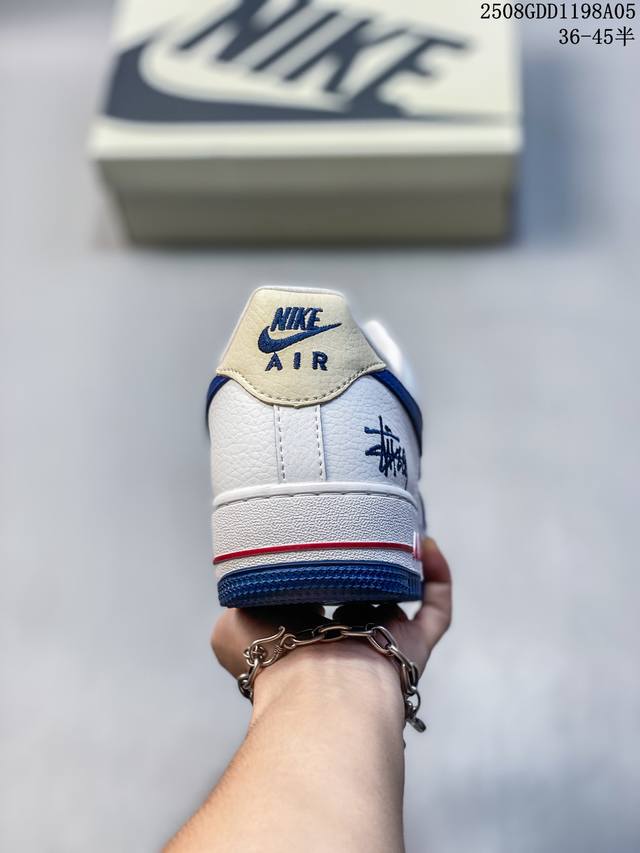 斯图西联名 蓝白,夏季清新配色,海外限量发售!公司级Nike Air Force 1 ‘07 Low 空军一号 低帮 运动鞋 休闲鞋 折边针车 工艺难度大 原楦头原纸板 定制鞋盒 定制五金配件 原厂鞋底