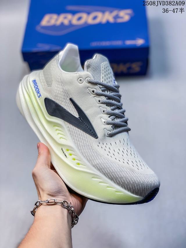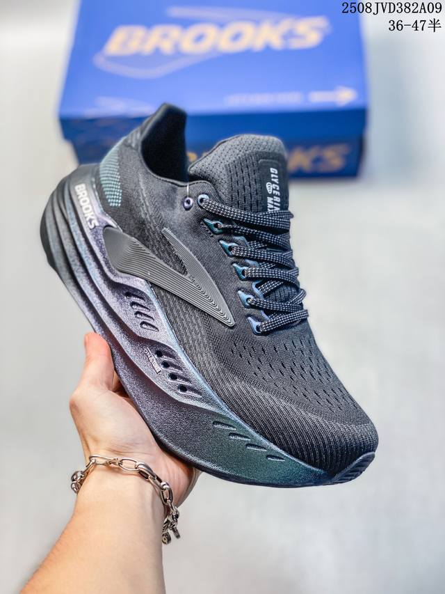 新品公司级 布鲁克斯 Glycerin Max 超级甘油:舒适的增高神器!Brooks Glycerin Max是一款极具突破性的顶级缓震运动跑鞋,由百年专业跑鞋品牌Brooks推出。Glycerin Max超级甘油作为Glycerin甘油系列的颠覆之作,带来了全新的科技和设计。Glycerin Max超级甘油采用了Dna Tuned中底技术,这是一种将超临界泡沫颗粒采用双重分子注氮技术一体成型的超级中底。前掌区域使用了更多小分子材料,提供迅捷灵敏的回弹反馈;后掌区域则使用了更多大分子材料,使落地更加舒适