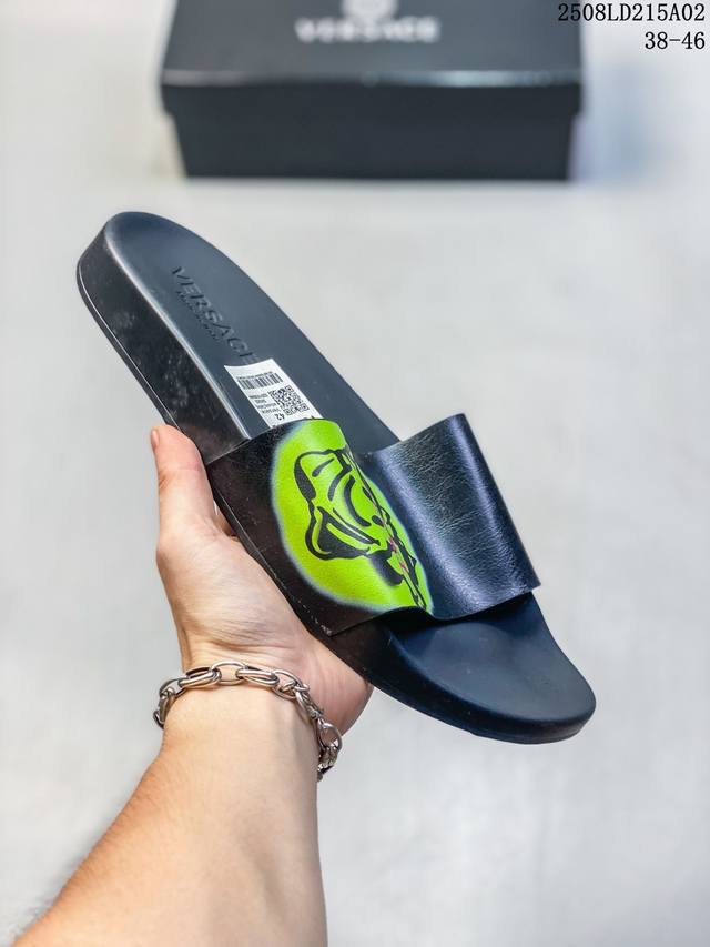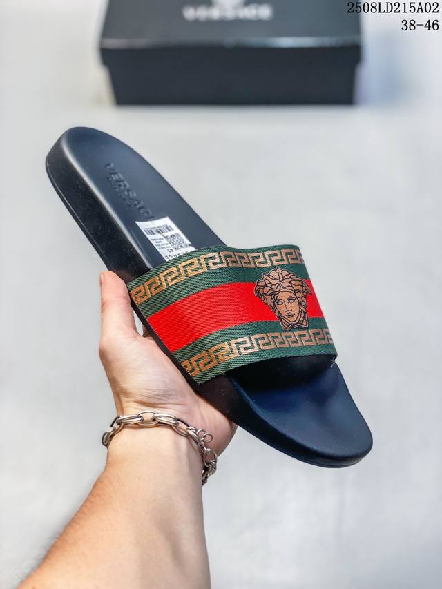 新品 Versace范思哲 百搭 抗菌一字拖鞋 巴洛克印花男款凉拖鞋 休闲轻便时尚 橡胶 拖鞋V字Logo 舒适轻便拖鞋#上街穿的拖鞋 #范思哲 #拖鞋已备好 #沙滩拖鞋 #高颜值好看的拖鞋 Dsr262Cndg0M81R33V