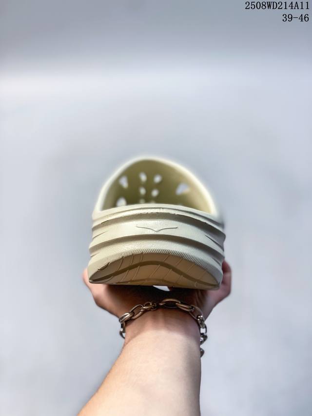/ 新款 Hoka One One 夏季沙滩拖鞋 洞洞鞋 包头凉拖鞋 家居休闲拖鞋一体成型 一字拖厚底增高踩屎感凉拖鞋。Hoka在超厚中底方面的积累 让它跑在了其他