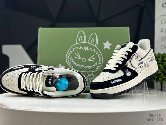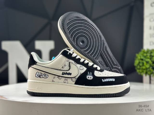 海外爆款限量发售!高端定制 耐克 Nike Air Force 1 '07 Low “Labubu联名--- 奶白黑” 拉布布印花 按钮挂件 高端定制 低帮休闲板鞋 定制鞋盒 大厂纯原品质出货 超高清洁度 皮料切割干净无任何毛边 细节完美