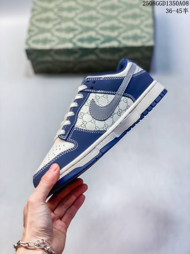 海外爆款限量发售!高端定制Nike Sb Dunk Low 古驰联名--- 奶白灰蓝印花 高端定制 低帮休闲板鞋 定制鞋盒 大厂纯原品质出货 超高清洁度 皮料切割干净无任何毛边 细节完美