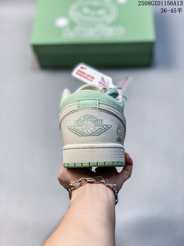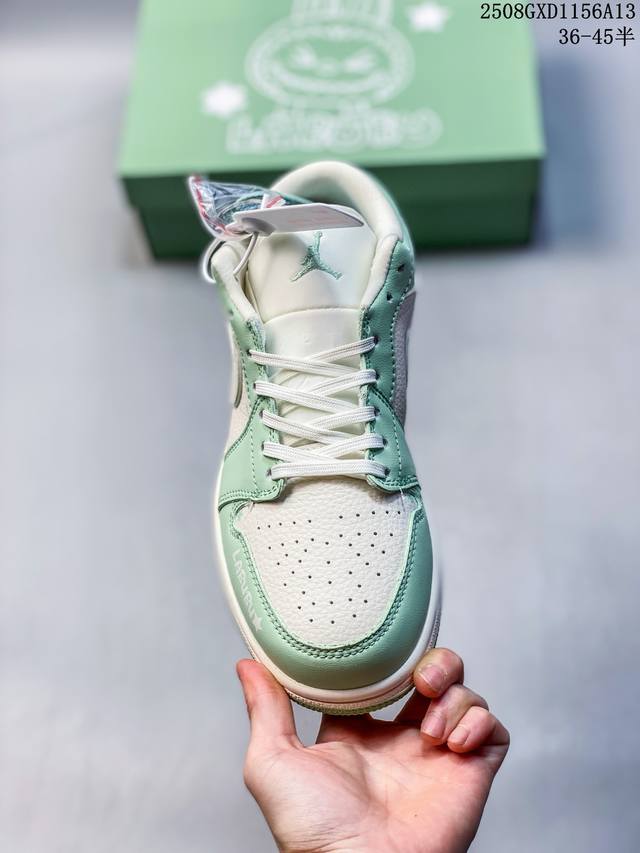 海外爆款限量发售!Nike Jordan Air Jordan 1“米绿拉布布” 高端定制 低帮 复古 减震 防滑 耐磨 篮球鞋 定制鞋盒 大厂纯原品质出货 超高清洁度 皮料切割干净无任何毛边 细节完美