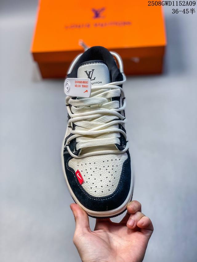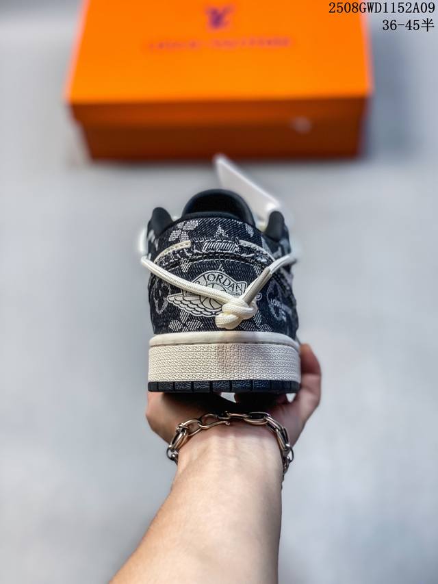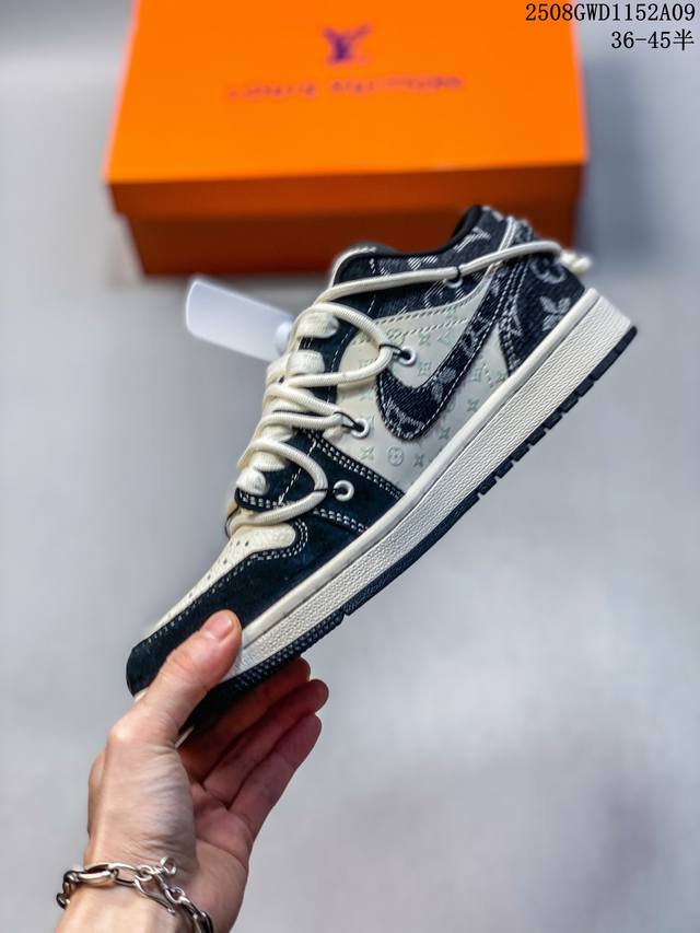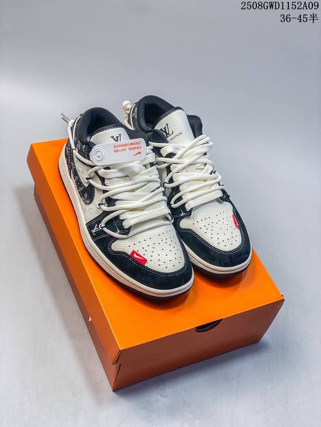 海外爆款限量发售!Nike Jordan Air Jordan 1“Lv联名 黑脚趾抽绳” 高端定制 低帮 复古 减震 防滑 耐磨 篮球鞋 定制鞋盒 大厂纯原品质出货 超高清洁度 皮料切割干净无任何毛边 细节完美