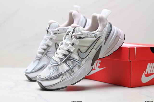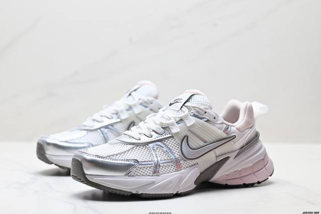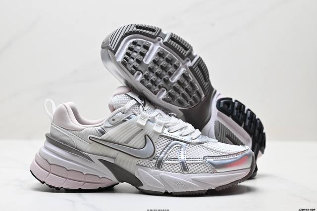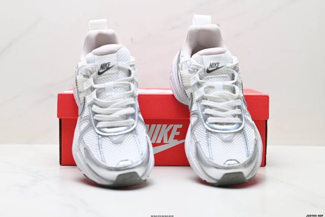 真标耐克Nike V2K Run跑步鞋复古风潮 网面透气运动鞋 灰银紧致的鞋面材质提供良好的包裹性鞋侧 Swoosh以及鞋头部分搭配增添不少亮点的镀铬细节鞋垫上印有Bill Bowerman头像 将细节拉满中底饰有独特的做旧效果 最后搭载黑色外底凸显整双鞋的复古气质