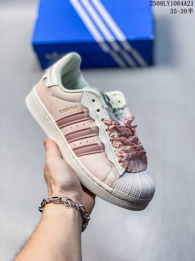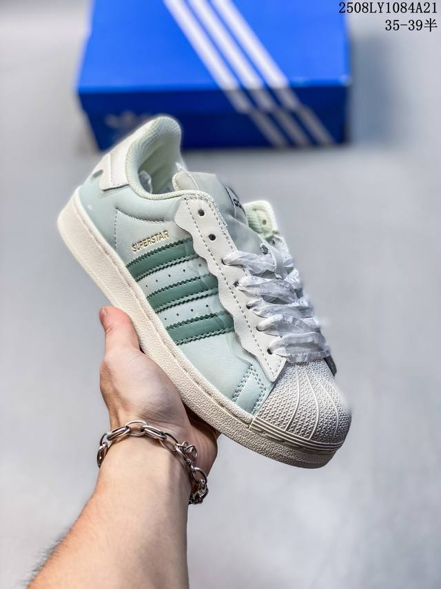 真标阿迪达斯Adidas三叶草 Originals Superstar”Sail Green Lace“贝壳头系列低帮经典百搭休闲运动板鞋 货号:Gw4446