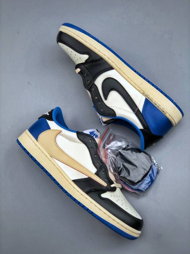 福利特价 Travis Scott X Fragment Design X Air Jordan 1 Low 乔1Aj1 Ts藤原浩闪电三方联名倒钩低帮文化篮球