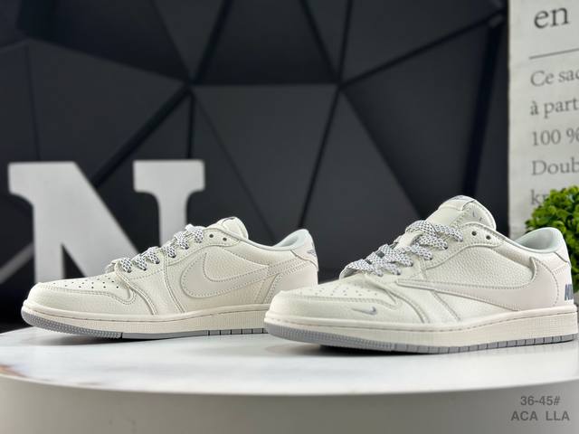 耐克 海外爆款限量发售!公司级 Travis Scott X Fragment Design X Jordan Air Jordan 1 Low Og Sp Nike-米灰满天星” 多方联名合作融合了Travis Scott 独特的音乐风格,藤原浩个性的设计风格以及Jordan品牌的经典元素 使其成为一双具有独特身份和价值的鞋子 清新而立体的外观加上联名标识更突出了其独特身份 这种配色方案显示出活力和时尚感 在视觉上引人注目 鞋身的质感和细腻的细节处理使其显得高端而格调十足 这款“倒钩”联名是设计与创意完