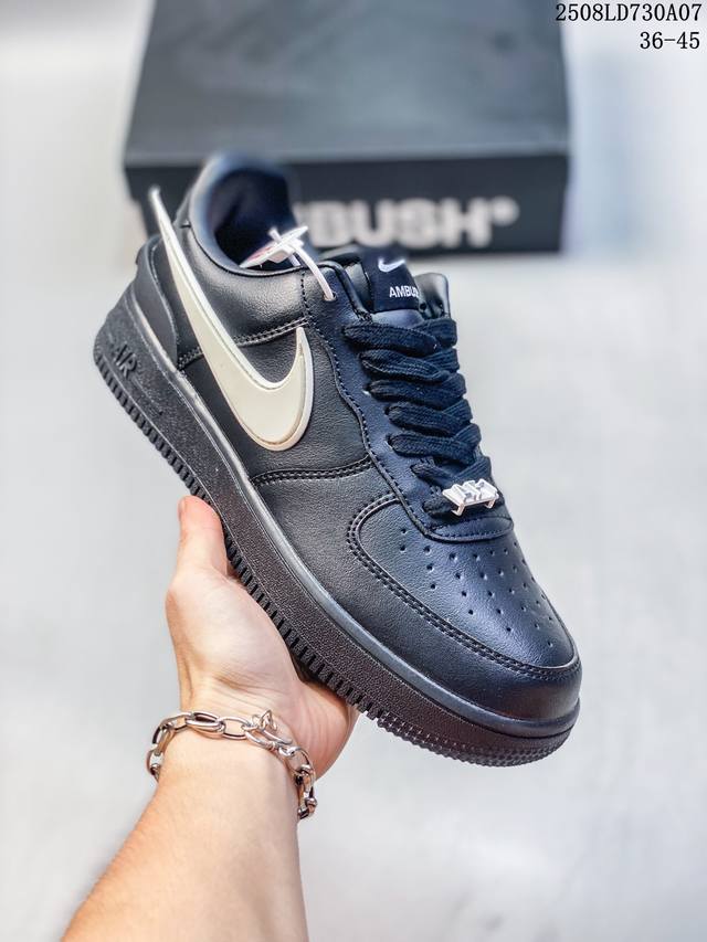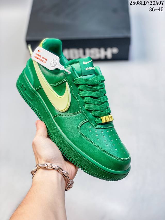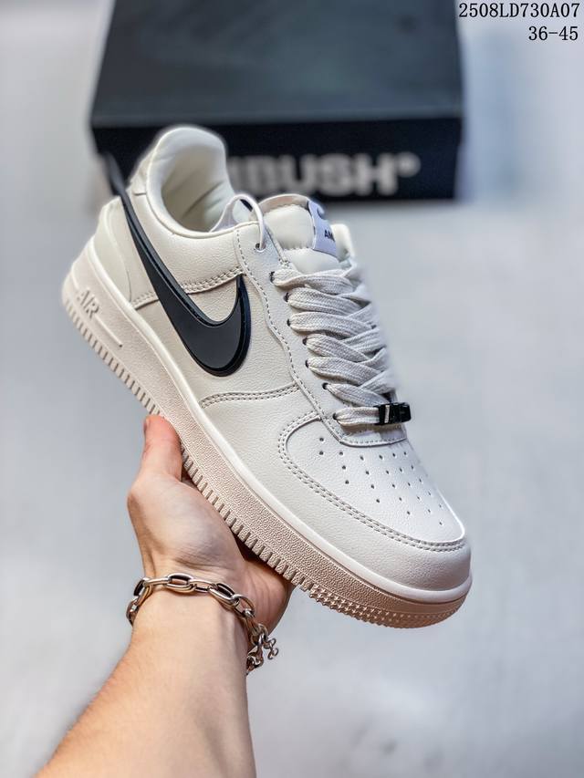 耐克 空军一号 Af1 低帮休闲板鞋 Ambush X Nk Air Force 1'07 Low Sp 空军一号联名标志性的Swoosh延伸至鞋跟之外,鞋舌和鞋垫上印有Ambush品牌标志,整体简约大气,可以适配多种造型,鞋身以及内衬均采用了皮革打造,标志性的超大Swoosh依旧采用了突出鞋面的造型。鞋带顶端还带有特殊的鞋带扣设计。后跟处搭载了与Dunk相同的Tpu设计,并且带有Ambush字样,彰显联名身份。柔软、弹性十足的缓震性能和出色的中底设计,横跨复古与现代的外型结合,造就出风靡全球三十多年的F