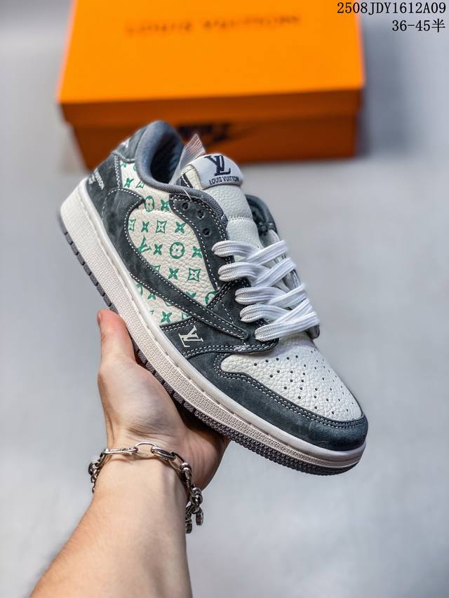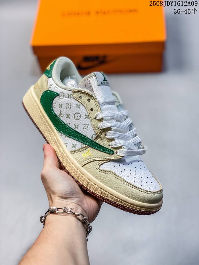 重磅三方联名, 闪电倒钩Aj1 当红嘻哈歌手特拉维斯 斯科特携手藤原浩主理品牌Fragment Design X Travis Scott X Nike Air Jordan 1 Low Og Sp”Black Green Toe“Aj1乔丹一代经典低帮文化百搭休闲运动篮球鞋,