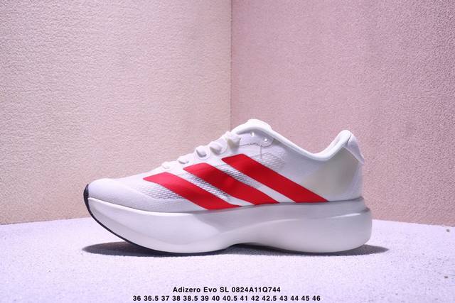 / 阿迪达斯 Adidas Adizero Evo Sl M马拉松飞线贾卡轻质透气休闲运动跑步鞋 采用双层透气网纱 Flywire动态飞线绑缚鞋面材质 内置Zoom