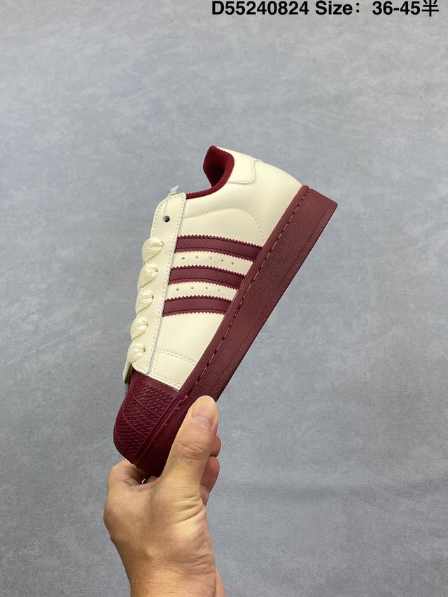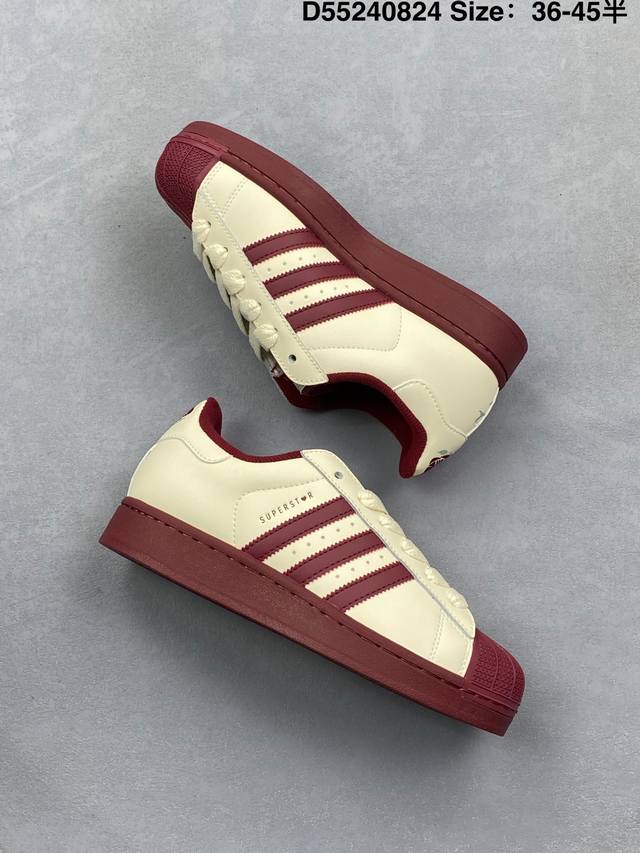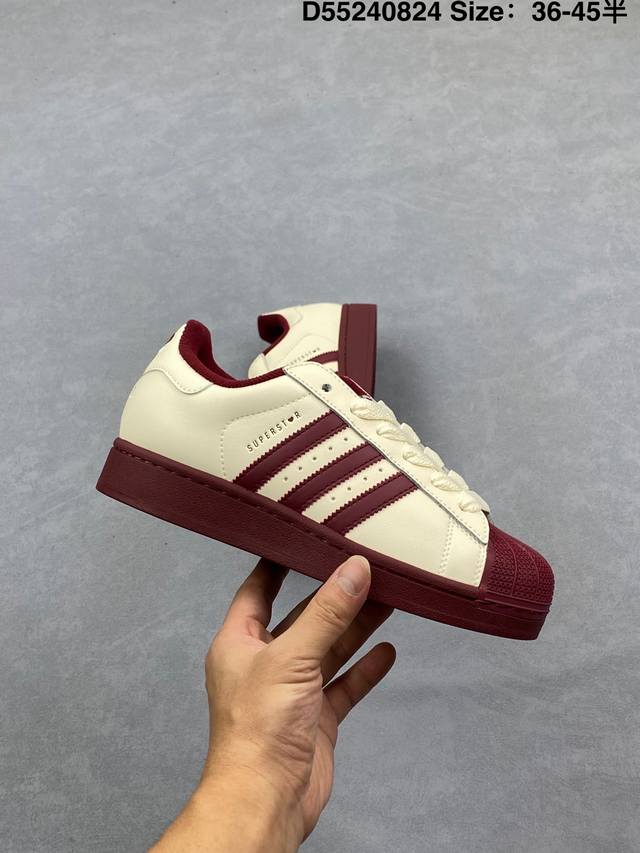阿迪达斯 Adidas Superstar 2025年新款鞋子 经典贝壳头系列 新款休闲板鞋潮流男女士运动鞋 。鞋面皮革拼接材质 标志性的贝壳鞋头,简约的线条。