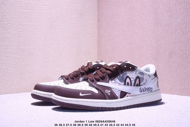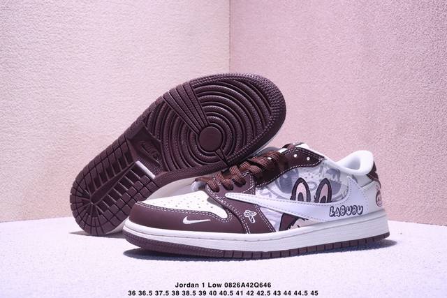 高端定制 Travis Scott X Jordan 1 Low “Labubu拉布布联名” 乔丹倒勾低帮休闲板鞋 原厂全头层皮 大厂纯原品质出货 纯正版型 定制鞋盒 皮料切割干净无任何毛边 细节完美 超高清洁度