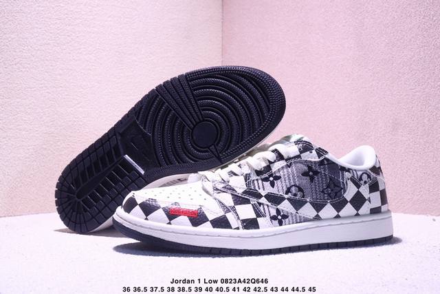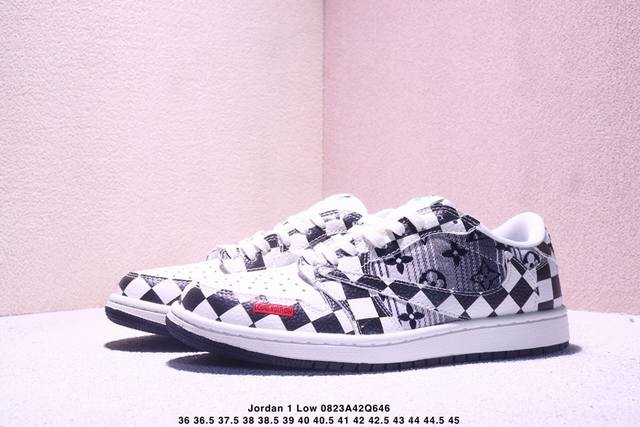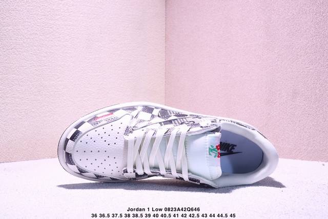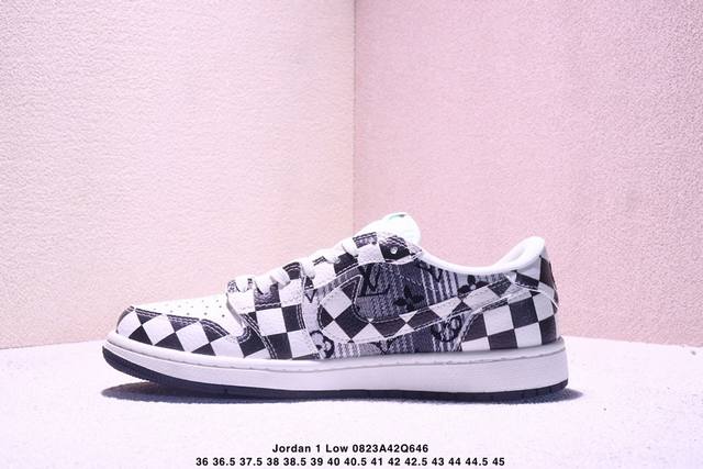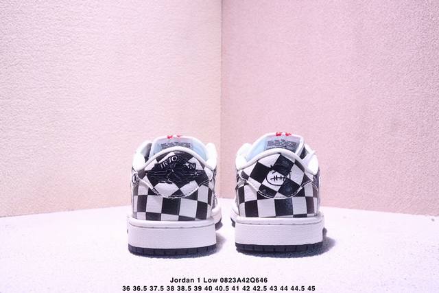 高端定制 Travis Scott X Jordan 1 Low Lv联名-黑白格牛仔 倒勾低帮休闲版本 原厂全头层皮 大厂纯原品质出货 纯正版型 定制鞋盒 皮料切割干净无任何毛边 细节完美 超高清洁度