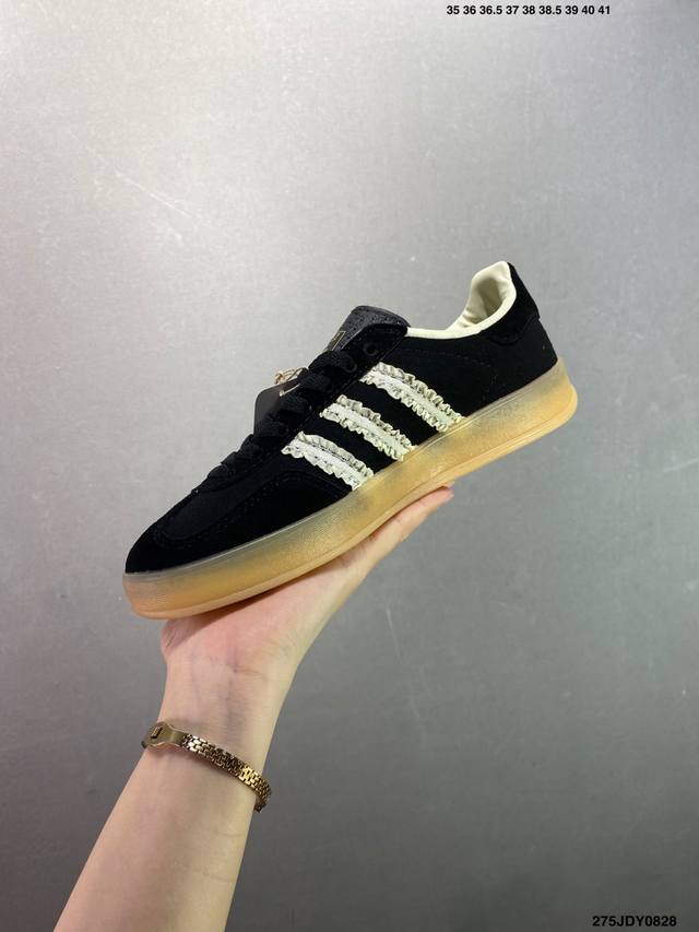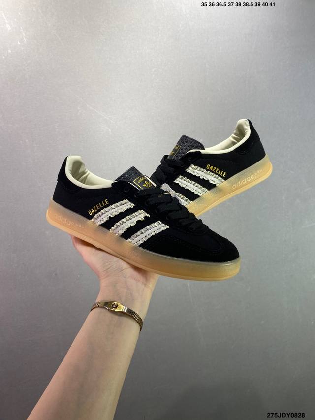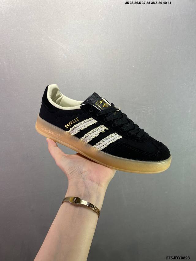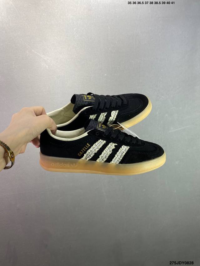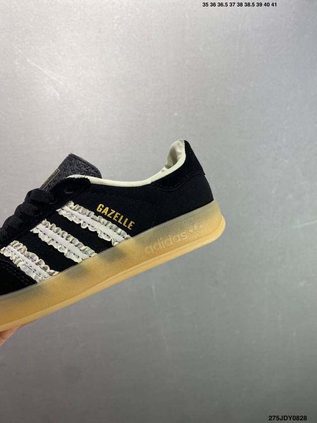 Ad Original Gazelle Indoor Trainers 瞪羚室内鞋系列低帮复古百搭休闲运动德训风板鞋 Ie2946 高端零售特供批次 原厂定制长毛翻毛皮组合环保纤维革鞋面材质 内置环保海玻璃鞋垫 外置Rb橡胶大底 产品品控稳定性领先行业 原厂全套原楦原纸板冲刀磨具开发 原厂皮料加持 原厂港宝加持定型后跟R度完美 将复古进行到底 简约流畅 三十年不变经典 这款Gazelle运动鞋 无论面料、配色、质感或设计 都只在重现其1991年原款的经典 皮革鞋面 撞色三条纹和鞋跟标的设计 力求呈现90年