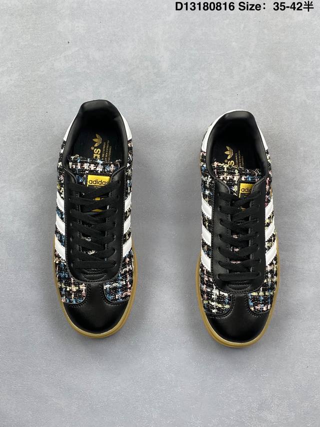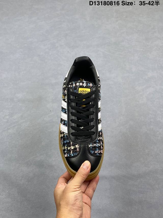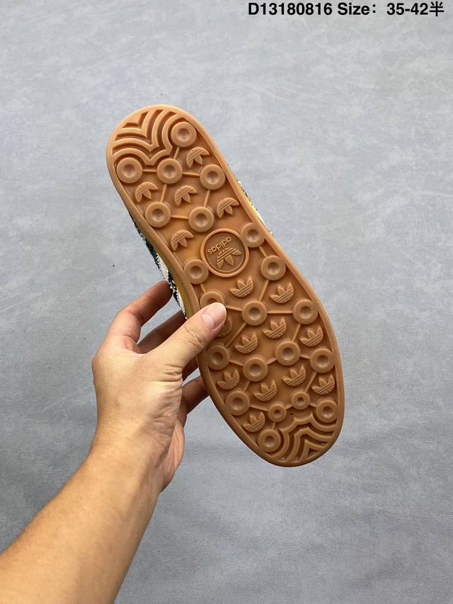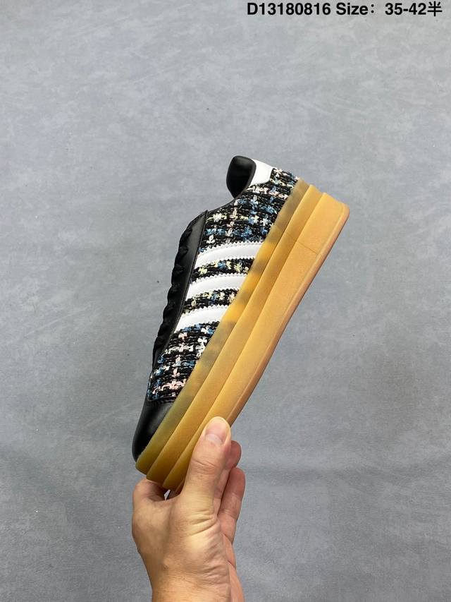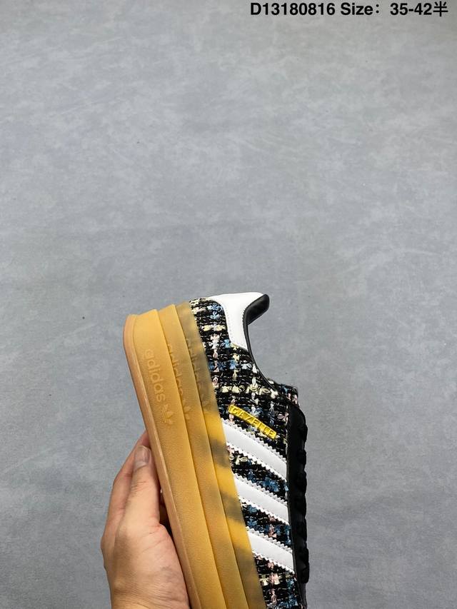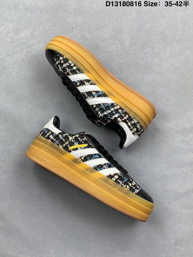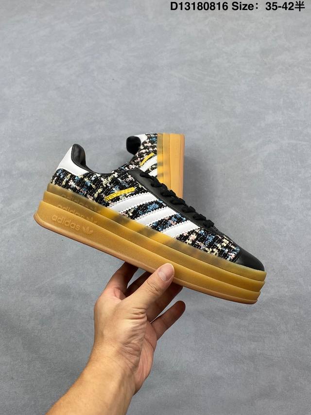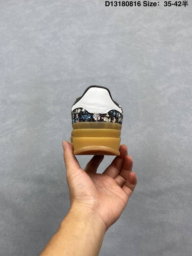 Adidas 阿迪达斯 德训系列 采用翻毛皮组合纤维革鞋面材质,外置加厚橡胶大底三层松糕 女生绝对爱!阿迪达斯Adidas Originals Gazelle Bold W 羚羊松糕系列复古百搭厚底增高低帮休闲运动板鞋“ Jp7390