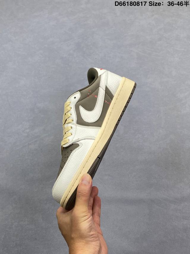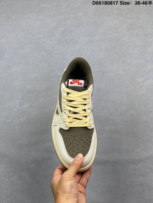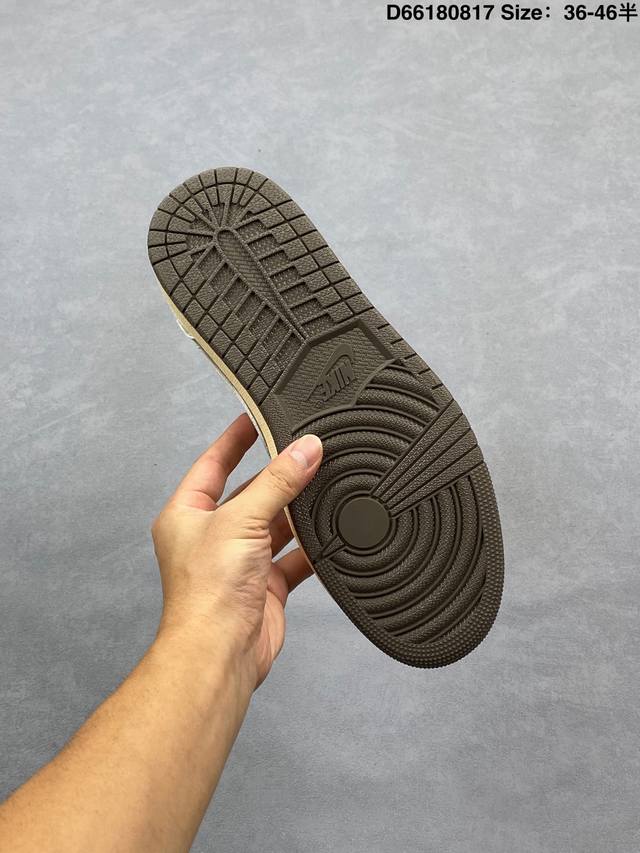 Aj1倒勾Travis Scott X Air Jordan 1 ” Reverse Mocha “ Aj1乔1 Ts 闪电 联名倒钩 低帮文化篮球鞋