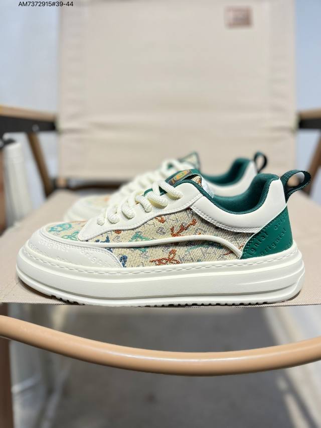 Sneakers Low 松糕厚底增高低帮 反系带乞丐风帆布低帮休闲运动鞋 Smilerepublic 檀健次 徐璐 程潇同款厚底开口笑半拖帆布鞋...