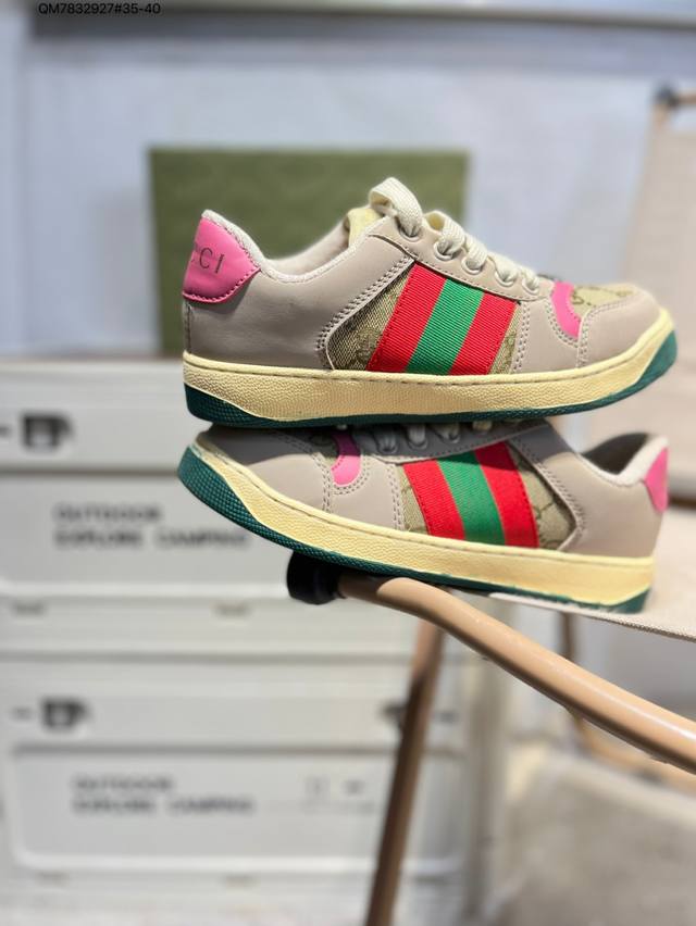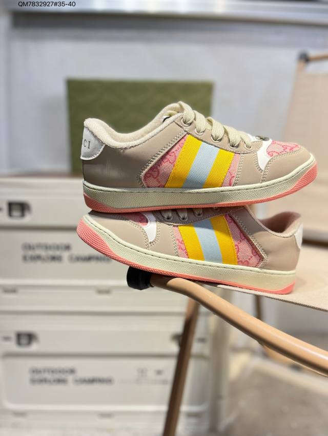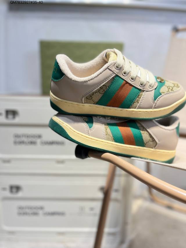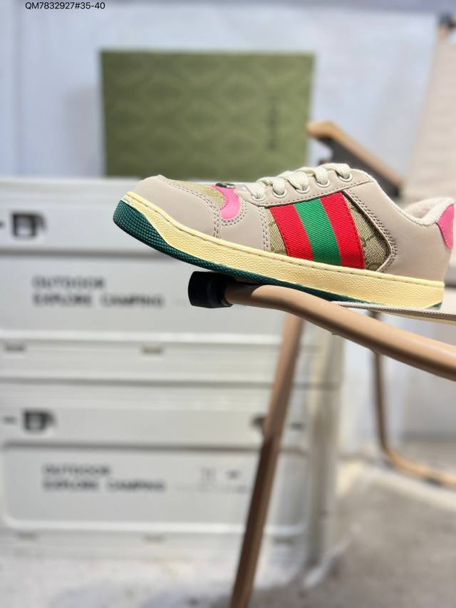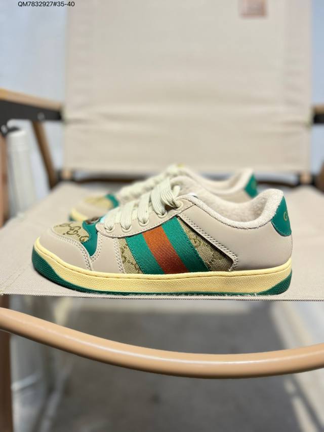 Gucci Distressed Screener Sneaker古驰经典小脏鞋原型复古百搭老爹板鞋 复古学院风Qm7832927#35-40