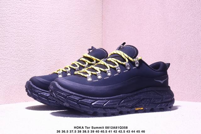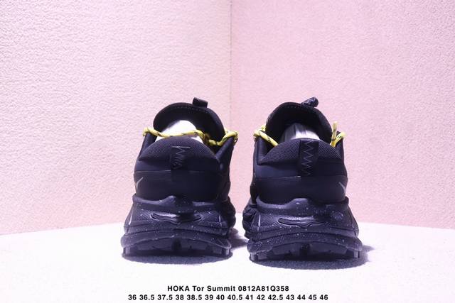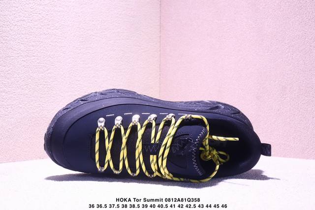 Hoka 霍卡 原楦原纸版数据开发版型,采用同源原厂Event机能防水磨砂小牛皮组合防滑防踢硫化橡胶片鞋面材质,原装轻量化材料Fresh Foam超轻量中底,全部用料过3C认证,滚动平衡科技减少33%能量消耗户外时尚必备鞋履!美国新兴跑鞋品牌Hoka One One Tor Summit 2 Low Black 托亚顶峰系列低帮厚底轻量坦克户外登山运动鞋 1147952