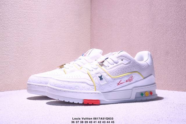 / Louis Vuitton 路易威登~白黄蓝 广东原产高性价比,采用皮革鞋面材质,内里小羊皮打造及去味海玻璃脚垫,空胶工艺,外置耐磨橡胶大底全新Lv路易威登Lo