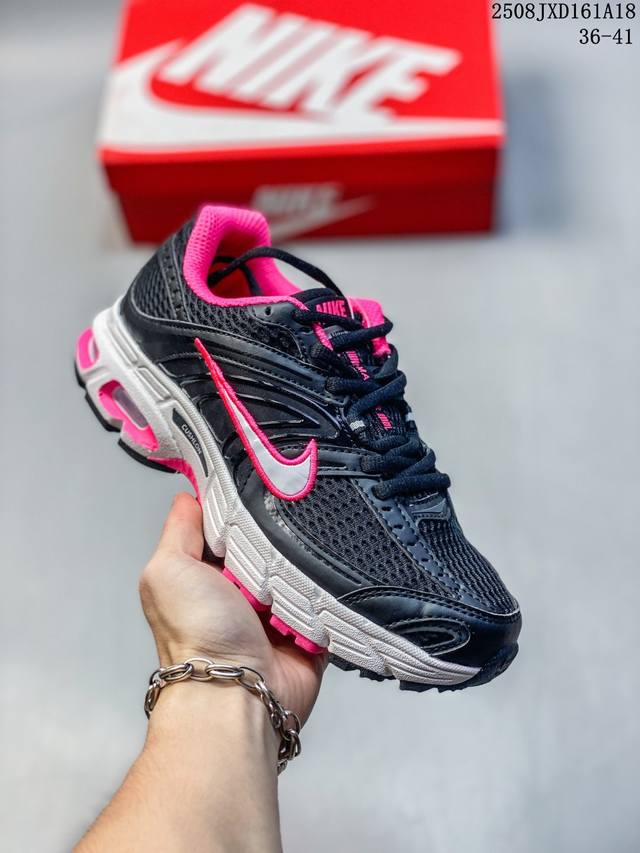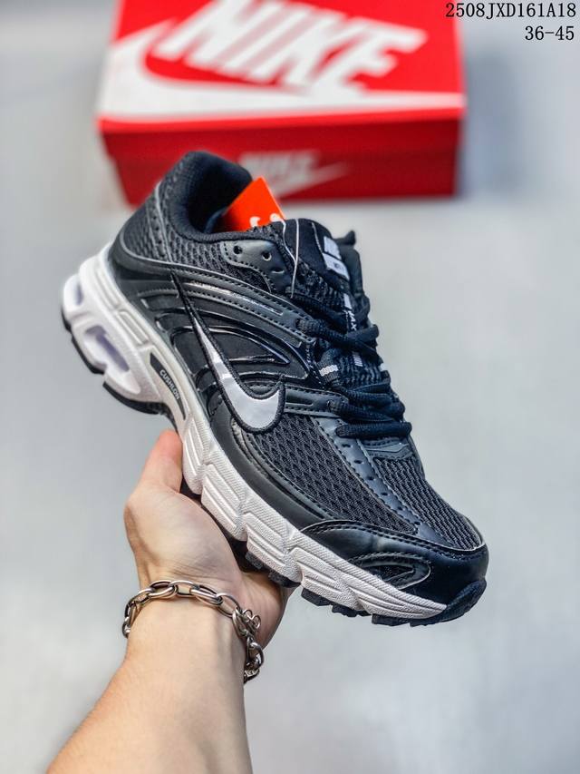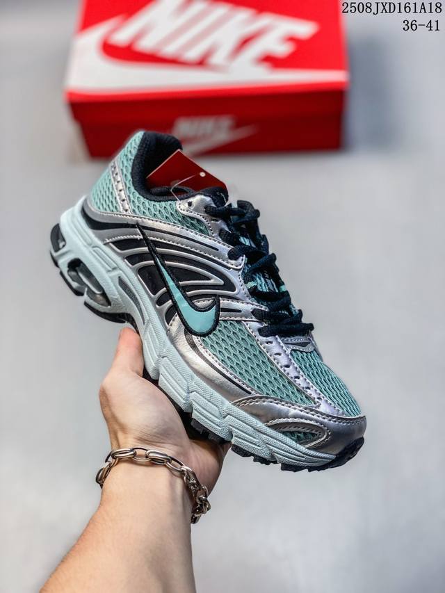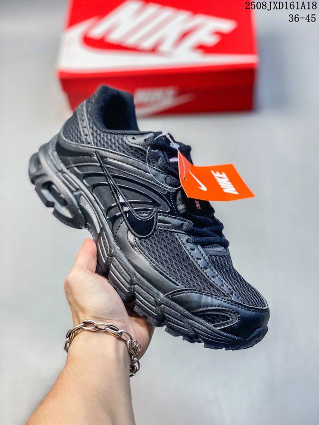 C版 Nike Zoom Plus 黑绿跑鞋 兼顾迅疾外观和稳固脚感 后跟覆面和中足动态支撑巧妙融合 缔造稳定顺畅的迈步体验...