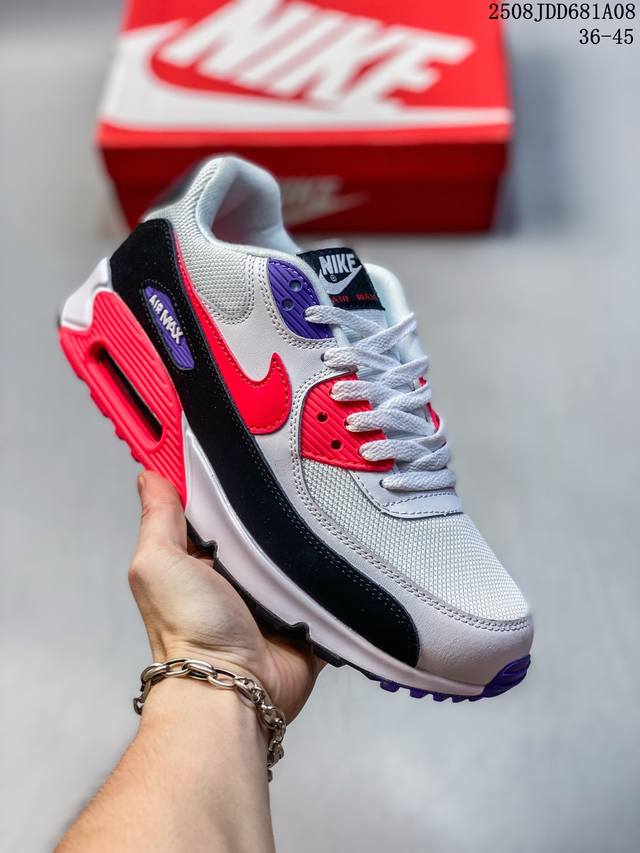Nike耐克运动鞋 Air Max 90 健身运动跑鞋休闲鞋 复古风十足!Air Max 90 作为 Nike 旗下最经典的鞋型之一,凭借着百搭的造型,获得众多鞋迷们的喜爱。鞋面采用皮革、网眼布和麂皮材质打造,带来不俗质感的同时还有一定的透气性。最后开窗式 Air Max 气垫收尾,完善整双鞋设计。Nike Air Max 90类鞋子 鞋后跟较高,减震效果出奇的好 鞋跟处有气垫 由于后跟高于前跟,便于跑步。鞋底采用华夫格橡胶底,抓地力确实强悍。气垫的吸震效果极佳,响应也很棒,再加上非常耐用。Nikeair
