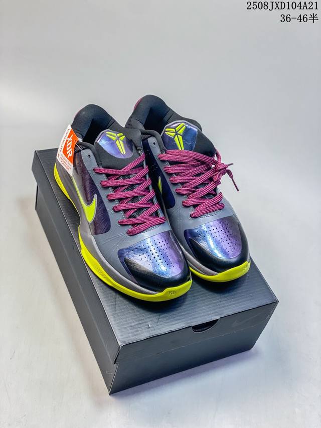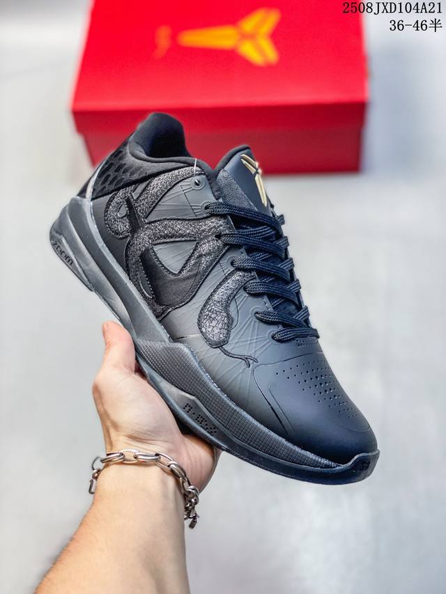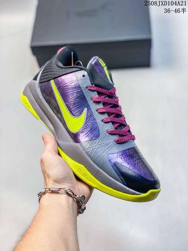 Nike 耐克 原楦原纸版开发,采用飞线 Fuse贴合科技针车工艺鞋面材质,搭载前掌Zoom Turbo气垫,中底塑料仿碳纤支撑板,外置防滑耐磨橡胶大底 科比Kobe 5 耐克Nike Kobe V Protro Eggplant Year Of The Mamba Zk5科比5代系列低帮休闲运动篮球鞋