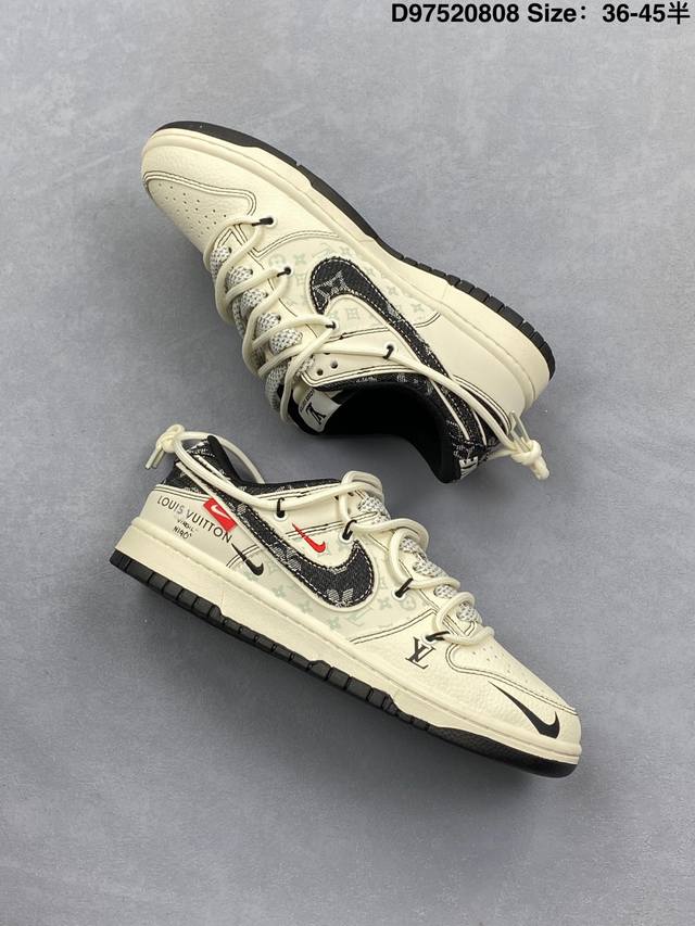 Nike Sb Dunk Low Lv联名 米白绑带黑勾 周年高端定制 低帮休闲板鞋