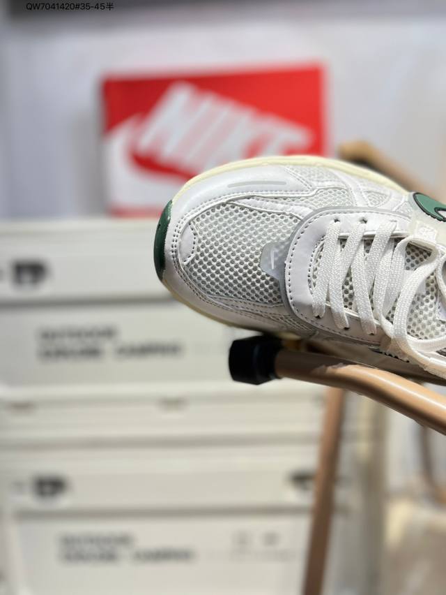 Nk V2K Runtekk 减震防滑低帮 复古老爹鞋跑步鞋 鞋款被命名为 Runtekk 设计上借鉴了 2000 年的跑鞋风格 配色上以金属银为主调 简练又有复古运动气质 材质上使用大面积网眼、皮革、Tpu 组成 支撑和透气性肯定不错 中底处由 Cushlon 泡绵打造 保证在压马路时可以提供优秀脚感 并通过一手做旧氧化效果突出复古感 中底造型很容易让大家联想到巴黎世家3Xl 增高效果同样不能忽视Hj4497 Qw7041420#35-45半