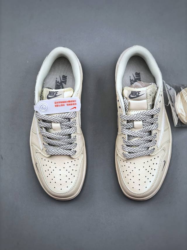 / P版 Nike Air Jordan 1 X Travis Scott Aj1倒勾 乔一倒钩 ‘Diy’定制 耐克 低帮文化篮球鞋 完美品质出货 细节如图所示