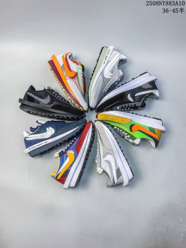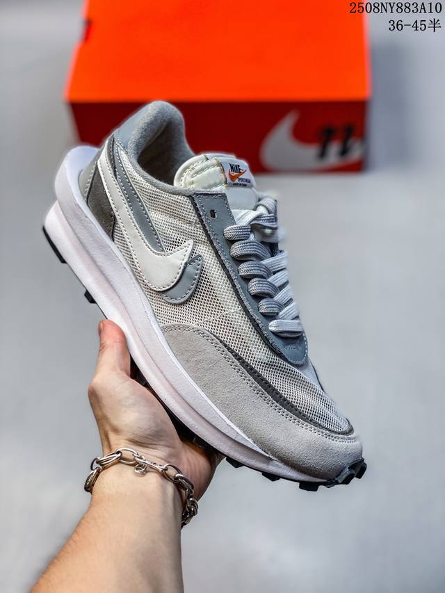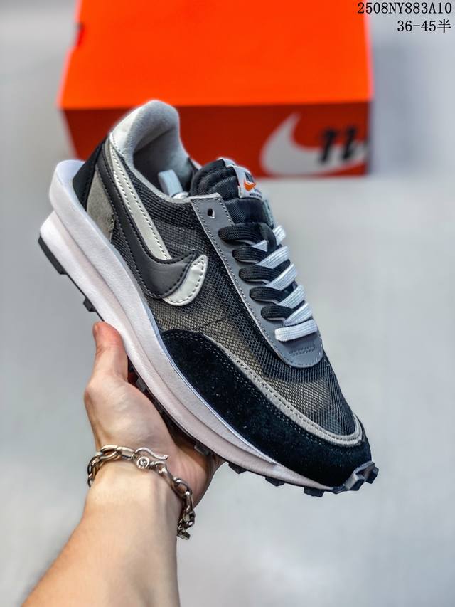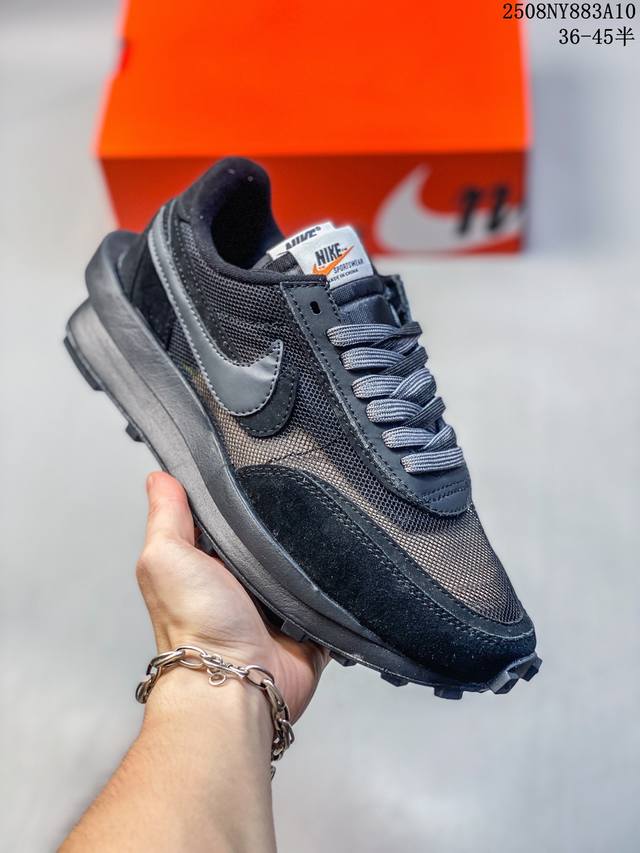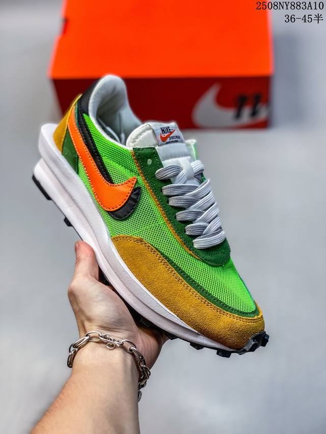 Sacai X N Ldwaffle ”Midnight Spruce And University Red“ 华夫2.0 黑蓝红解构 三方联名 采用了别致配色组合,鞋款整体以深杉木绿锦纶为基底,并且Swoosh和鞋身还以大学红点缀,以及形成鲜明对比;同时皮革覆面和翻毛皮拼接片混搭帆白中底,更为这款时尚单品注入一抹复古韵味;此外,鞋舌背面标签饰有联名品牌标志,后跟上方位置则彰显三方联名身份。此番合作,为传奇经典版型重塑新颖外观,造就又一人气力作。货号:Dh2684-001 400 Dh1347- Dj48