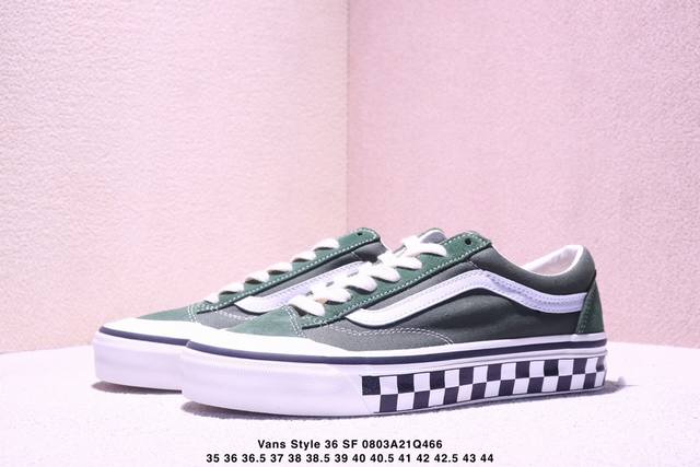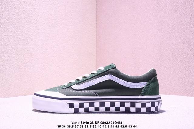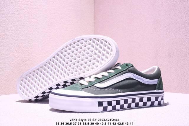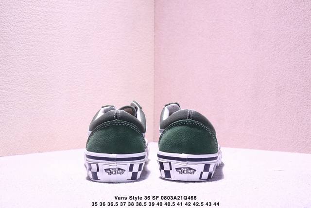 Vans Style 36 Sf绿色棋盘格低帮板鞋,经典绿色搭配白色底,黑白棋盘格设计,简约大气。鞋身采用优质帆布材质,舒适贴合,适合四季穿搭。 尺码:35 3