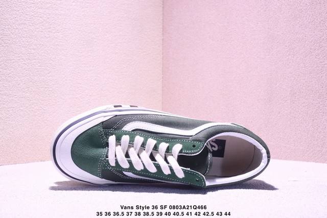 / Vans Style 36 Sf绿色棋盘格低帮板鞋,经典绿色搭配白色底,黑白棋盘格设计,简约大气。鞋身采用优质帆布材质,舒适贴合,适合四季穿搭。 尺码:35 3