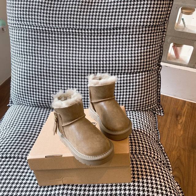 / Ugg民族风防水皮拉链款童鞋 羊毛一体儿童雪地靴 内里羊毛,防滑牛筋底 拉链设计 易穿脱 尺码26–35